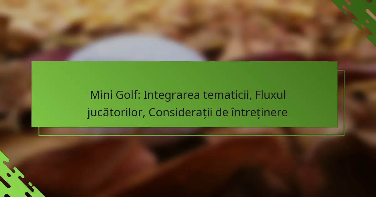 Creearea unui teren de mini golf de succes necesită o atenție deosebită la integrarea tematicii, fluxul jucătorilor și întreținerea acestuia. O temă coerentă îmbunătățește plăcerea jucătorilor și încurajează vizitele repetate, în timp ce un layout bine conceput promovează o navigare fluidă prin teren. În plus, întreținerea regulată este esențială pentru a asigura siguranța și o experiență de înaltă calitate pentru toți jucătorii.