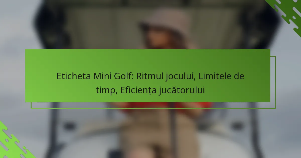 Eticheta mini golf-ului se concentrează pe menținerea unei experiențe fluide și plăcute pentru toți jucătorii. Principiile cheie includ respectarea ritmului jocului, respectarea limitelor de timp și asigurarea eficienței jucătorilor, în timp ce se promovează o atmosferă pozitivă pe teren.